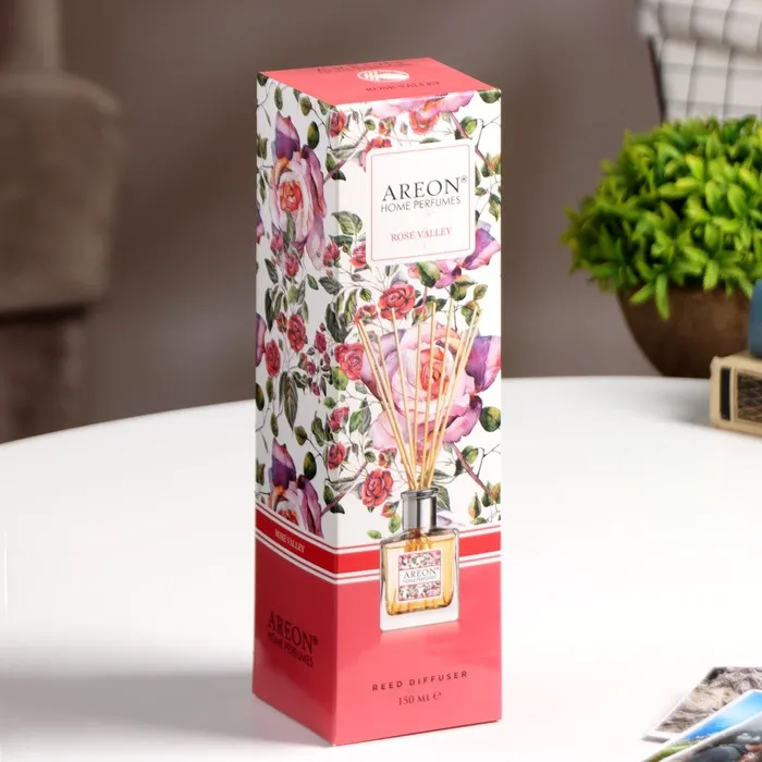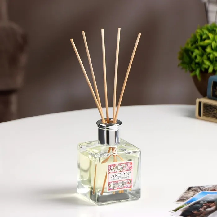 Диффузор "Сад роз" станет вашим верным помощником в создании уютной и тёплой атмосферы. Нежные, но стойкие ноты розового букета действуют успокаивающе, помогая расслабиться после долгого дня. Ощутите полюбившийся аромат, который раскроет истинную красоту вашего пространства.