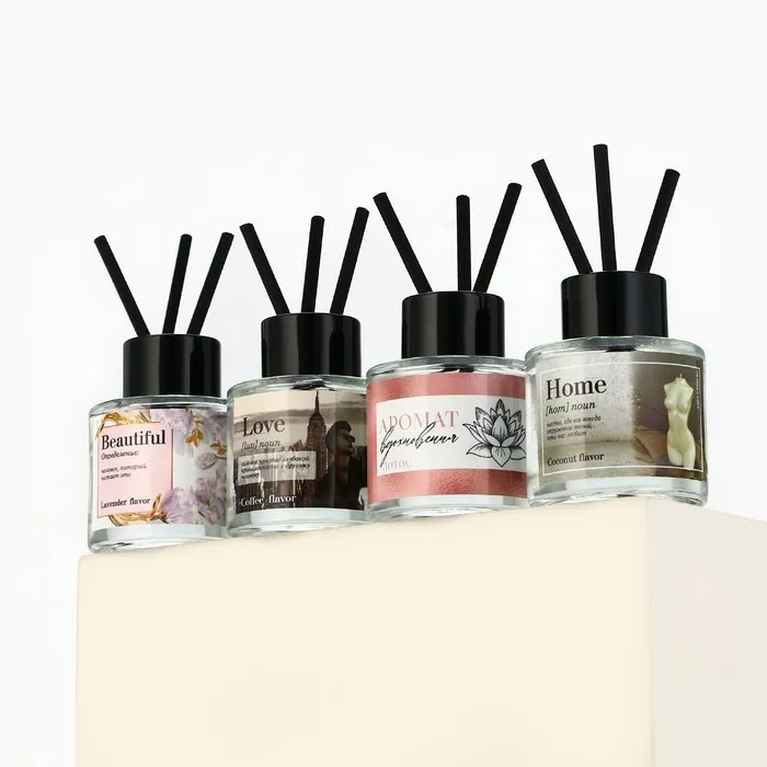 Извлеките диффузор из упаковки, откройте крышку и защитный колпачок, опустите палочки в ароматизированную жидкость и наслаждайтесь. Ароматизированная жидкость пропитывает палочки, и с их помощью аромат распространяется по всему помещению.