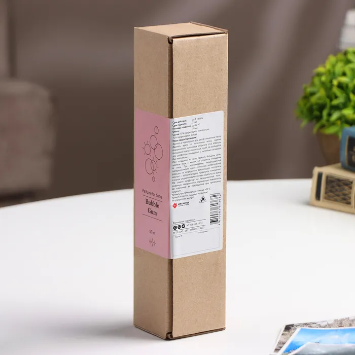- Небольшой объём – максимум аромата: Компактный флакон вмещает 50 мл благовоний, достаточно для заполнения пространства волшебным ароматом жевательной резинки. Отлично подходит для дома и офиса.