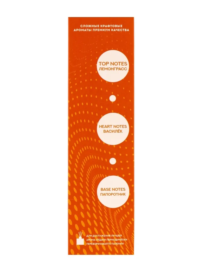 Его аромат раскрывается яркими цитрусовыми нотами лемонграсса, гармонично сочетаясь с зелёными акцентами полевых трав. Композиция создаёт ощущение прогулки по утреннему лугу, наполняя пространство бодростью, энергией и свежестью. Такой аромат помогает сосредоточиться, зарядиться позитивом и создать лёгкую, естественную атмосферу дома или в офисе.