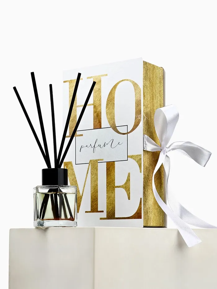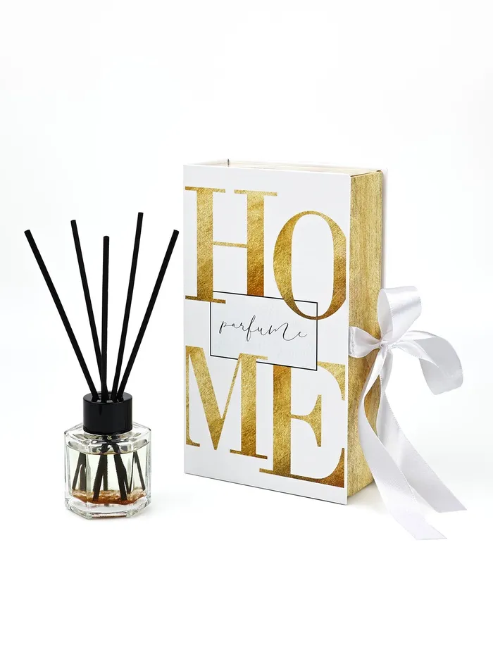 Представьте: вы открываете стильную черную коробку с нежным розовым бантом. Внутри - элегантный диффузор для дома «Home» от SEE YOU HOME, который наполнит ваш дом ароматом чёрного льда. Диффузор выполнен в виде стеклянной бутылочки с черной крышечкой, украшенной палочками из дерева, внутри флакона находится золото, которое придает изысканность.