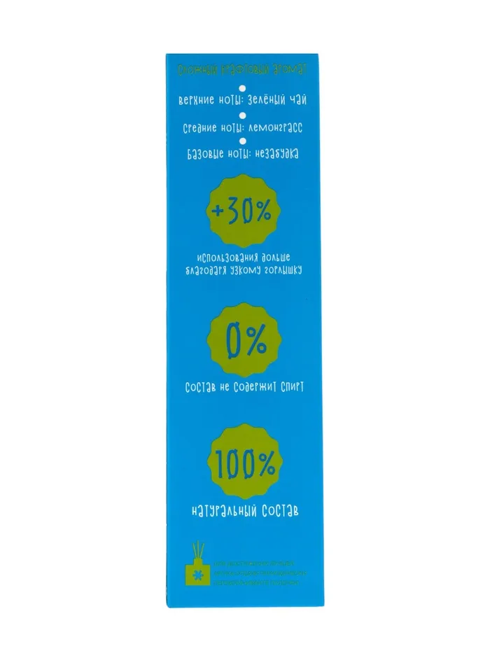 Его аромат раскрывается зелёными, слегка травянистыми нотами с мягкой, успокаивающей сладостью. Композиция создаёт ощущение лёгкости и гармонии, словно прогулка по тихому саду в солнечный день. Такой аромат помогает расслабиться, поднять настроение и наполнить пространство свежестью и спокойной энергией.