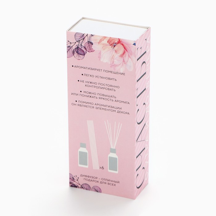 Ароматический диффузор «Гармония» с ароматом жасмина - это прекрасное дополнение к вашему интерьеру. Диффузор упакован в красивую картонную коробку с нежным цветочным принтом, которая станет отличным подарком для любителей изысканных ароматов.