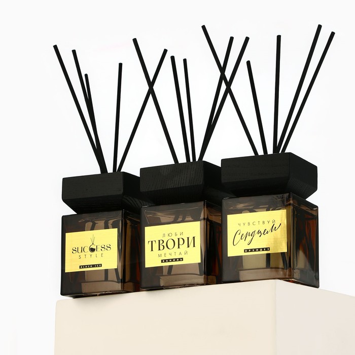 Стильный флакон с черным матовым покрытием и деревянной крышкой, украшенный золотистой этикеткой с названием аромата, отлично впишется в любой интерьер. В комплекте идут палочки из натурального дерева, которые, впитывая аромат, распространяют его по всей комнате.