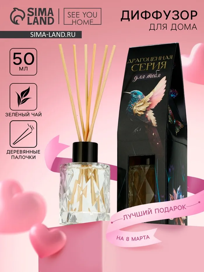 Ароматический диффузор SEE YOU HOME «Драгоценная серия» с ароматом зеленый чай- это стильное и практичное решение для создания приятной атмосферы в вашем доме.