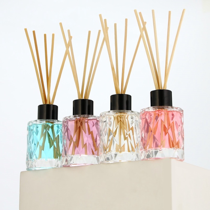 Диффузор выполнен в красивой стеклянной бутылочке с изысканным дизайном. В комплекте - деревянные палочки, которые нужно вставить в бутылочку с ароматом. Палочки впитывают аромат и постепенно распространяют его по помещению.