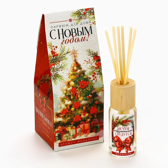 Диффузор ароматический палочки новогодний «Мечты сбудутся», аромат мандарин, 30 мл — Характеристики
