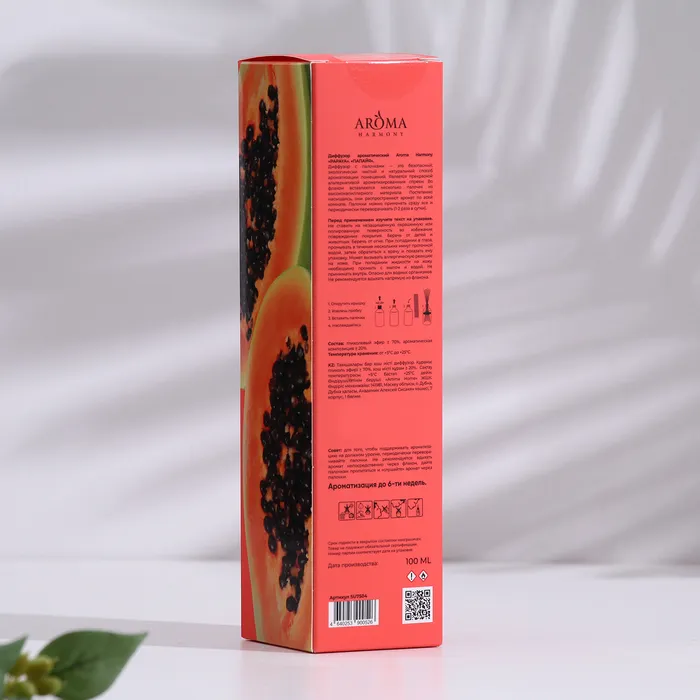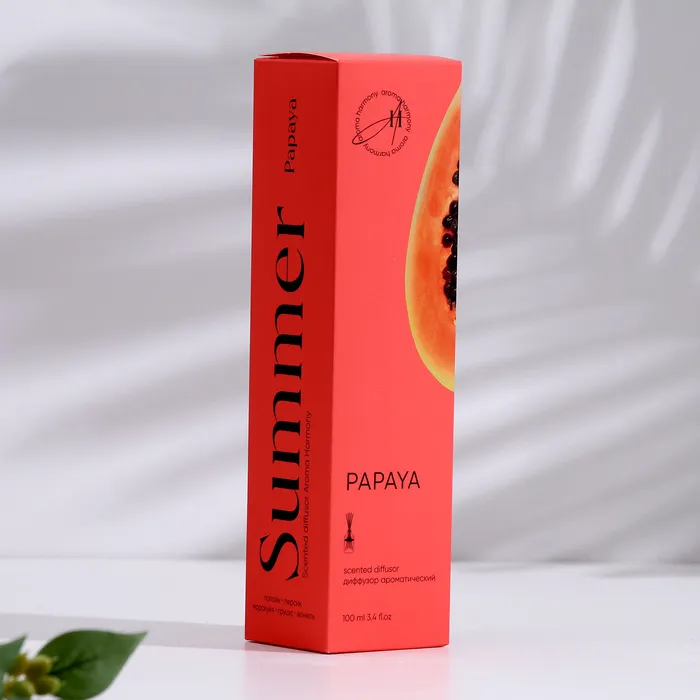 Ароматический диффузор «Papaya» — это экзотический штрих свежести и солнечного настроения прямо у вас дома. Сочный, слегка тропический аромат спелой папайи наполняет пространство лёгкой сладостью и мягкими фруктовыми нотами, создавая атмосферу уюта и отдыха. Этот диффузор — словно короткий отпуск среди повседневных дел: он помогает расслабиться, мечтать и наполнять дом лёгкой энергией лета.