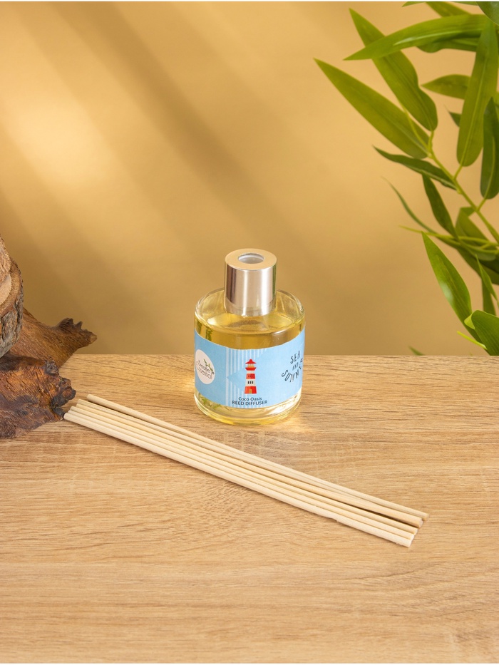 Диффузор Sea and Summer Coco Oasis объёмом 50 мл с ароматом сочного кокоса. Насыщенный тропический запах создаст атмосферу летнего отдыха даже в городской квартире. В комплекте – 6 бамбуковых палочек для равномерного распространения аромата. Лаконичный дизайн и удобный флакон впишутся в любой интерьер.