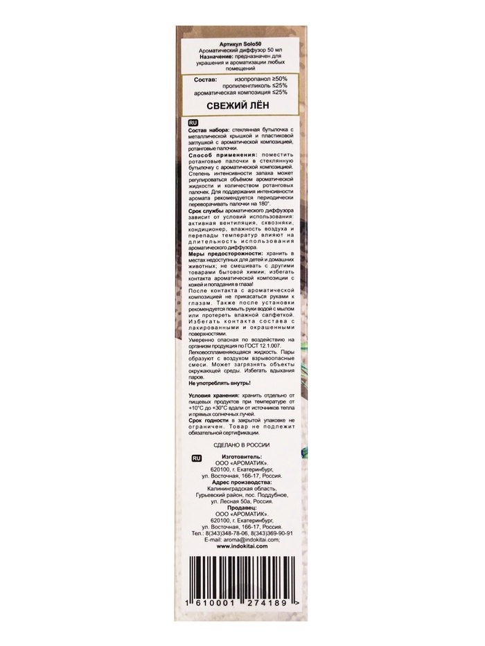 Разместите диффузор в сухом месте, вдали от прямых солнечных лучей.