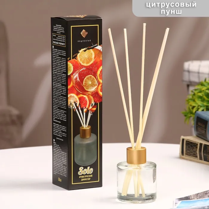 Наполните пространство солнечным настроением: сочные ноты апельсина, лимона и грейпфрута в обрамлении лёгкой пряности создают атмосферу праздника и бодрости. «Цитрусовый пунш» оживляет утро, добавляет энергии в течение дня и мягко согревает вечер, превращая дом в место, где всегда царит радость. Стильный флакон органично впишется в любой интерьер, став его ароматным акцентом.