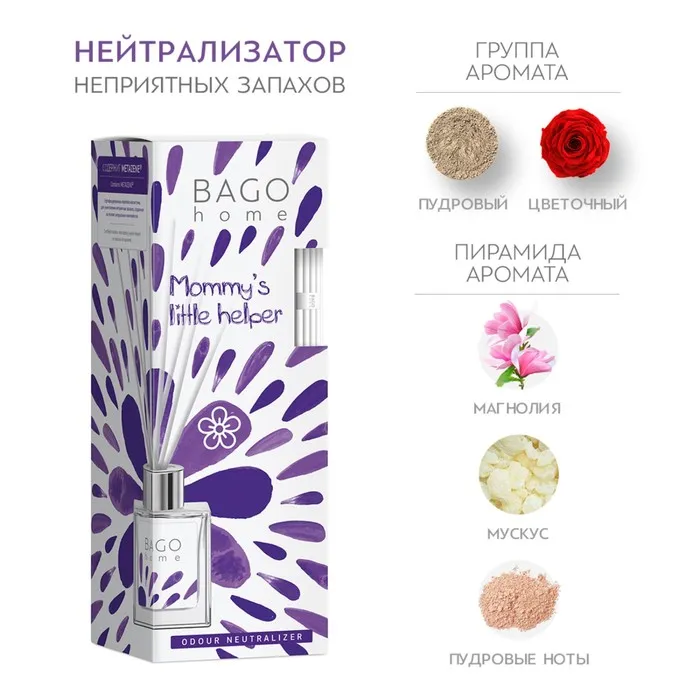 Сертифицированная европейская система METAZENE® для уничтожения неприятных запахов. Ароматы для дома Баго Хоум из коллекции ""Mommy’s Little Helpers"" очищают и ароматизируют воздух!