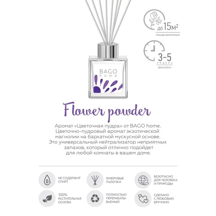 BAGO home – это бренд ароматов для дома с европейским качеством. Главные ценности компании – создавать натуральные и экологически чистые ароматы для каждого дома. Огромная палитра ароматов, авторский дизайн, безопасный состав и контроль всего цикла производства – все это делает компанию уникальной на международном рынке, где бренд Баго хоум знают и любят уже в 12 странах.