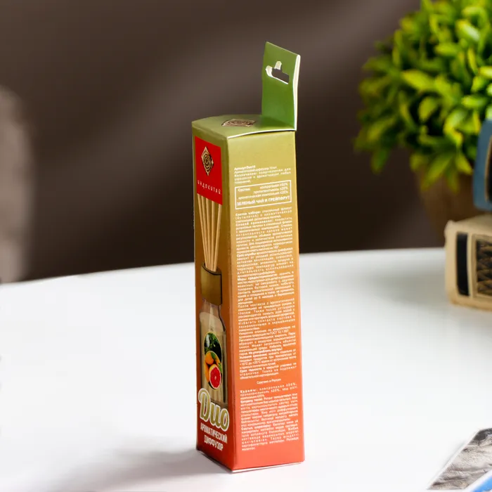 Освежите пространство энергией и легкостью с ароматическим диффузором «Зелёный чай и грейпфрут». Свежие травяные ноты зелёного чая гармонично сочетаются с яркой цитрусовой искрой грейпфрута, наполняя дом бодростью и чистотой. Компактный объём 10 мл идеально подойдёт для небольших помещений — спальни, ванной комнаты, рабочего стола или прихожей.
