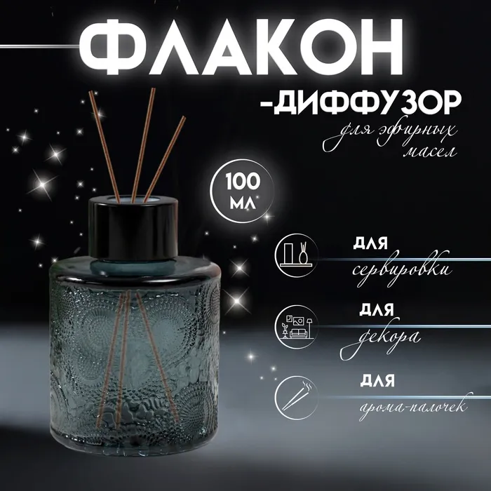 Диффузор для эфирных масел с крышкой «Цветочный», прозрачный серый, 100 мл, 6×6×8 см — Характеристики