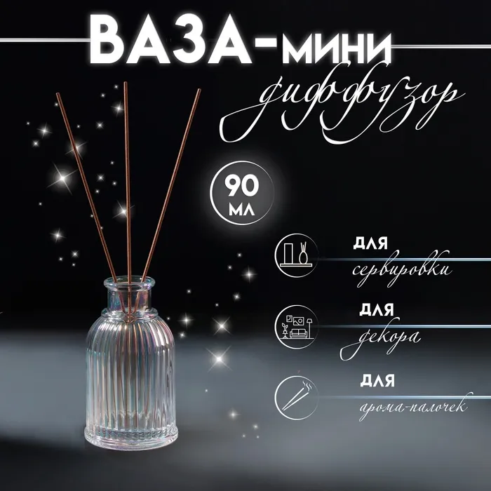 Диффузор для эфирных масел "Вертикаль" 90 мл прозрачный перламутр 5,5х5,5х9,5 см — Характеристики