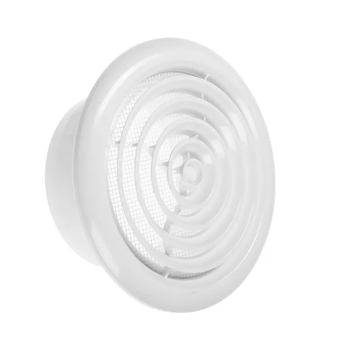 Диффузор имеет стопорное кольцо, которое облегчает монтаж с гибкими воздуховодами и крепление к потолку.