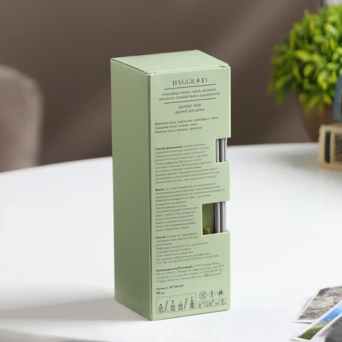 Юзу – цитрус родом из древнего Китая. В нём сочетается и привкус лимона и оттенок лайма и лёгкая горчинка грейпфрута. Вся эта палитра ярких вкусов приправлена свежей мятной нотой, сладостью ананаса и представлена в аромате Хюгге #13 Цитрус/юзу.
