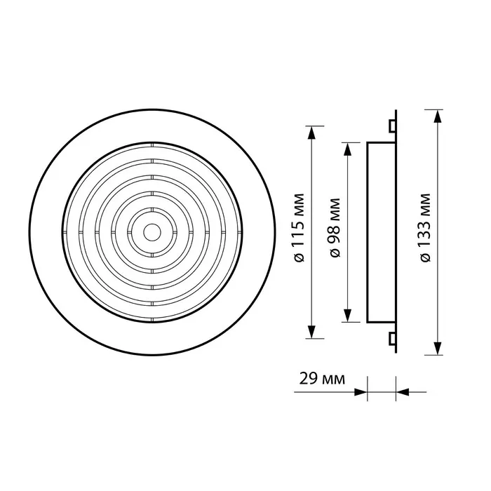 Диффузор ERA 10DK, приточно-вытяжной со стопорным кольцом и фланцем, d=100 мм