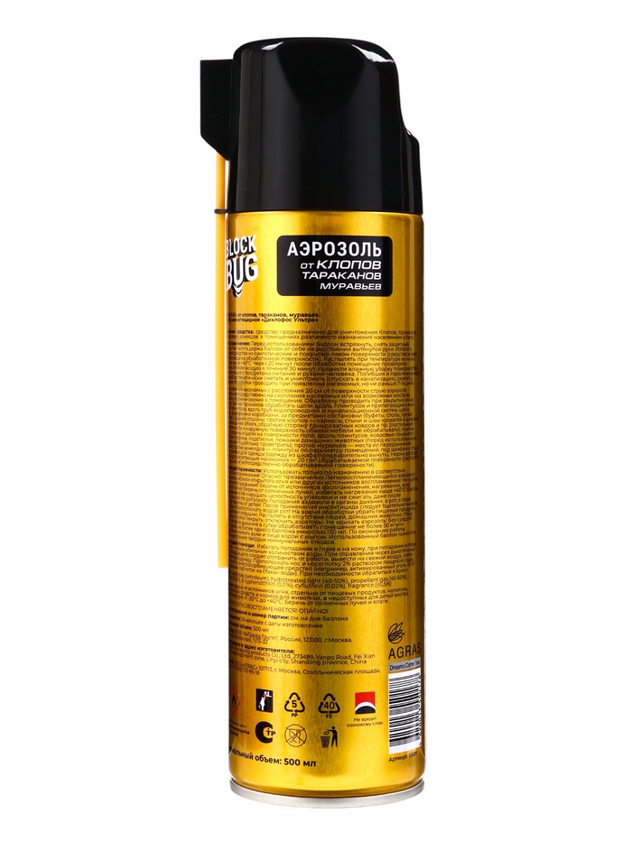 Дихлофос от клопов, тараканов и муравьев BLOCK BUG, 500 мл — Характеристики