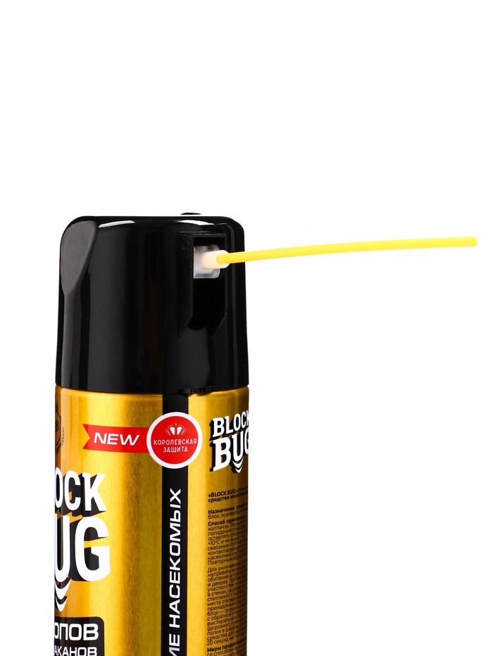 Аэрозоль BLOCK BUG от ползающих насекомых — это современное средство на основе дихлофоса для борьбы с тараканами, клопами и муравьями. Формула действует при контакте с вредителями и сохраняет активность на обработанных поверхностях.