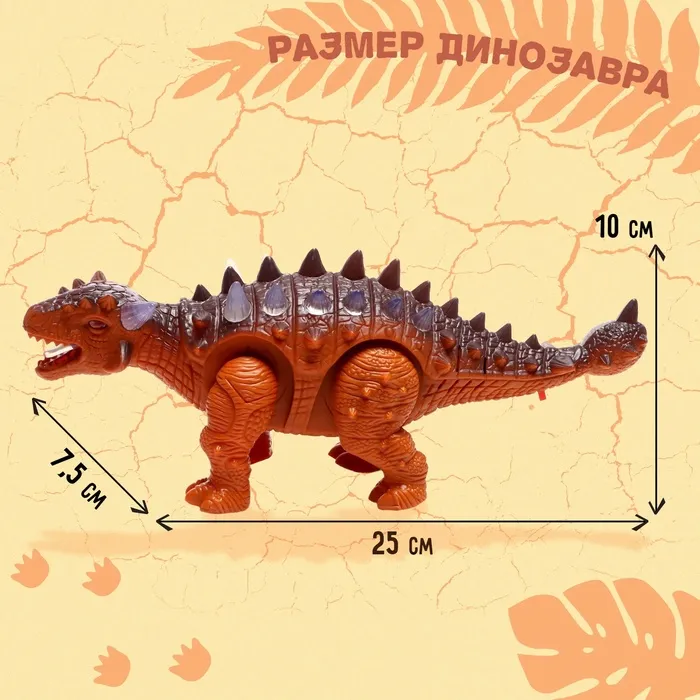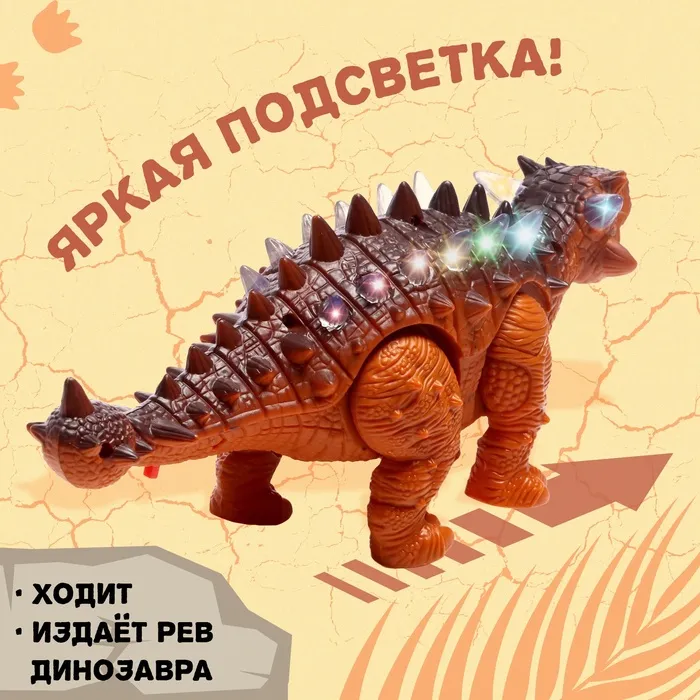 Динозавр «Анкилозавр» работает от батареек, свет и звук, цвет коричневый — Характеристики