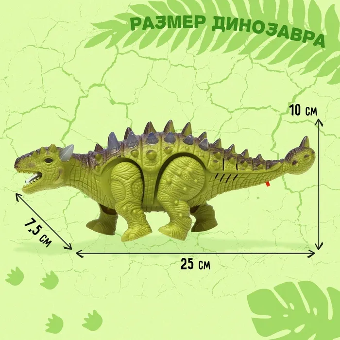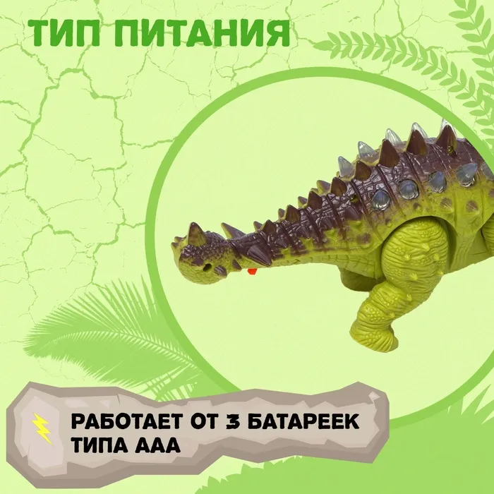 Динозавр «Анкилозавр» работает от батареек, световые и звуковые эффекты, цвет зелёный — Характеристики