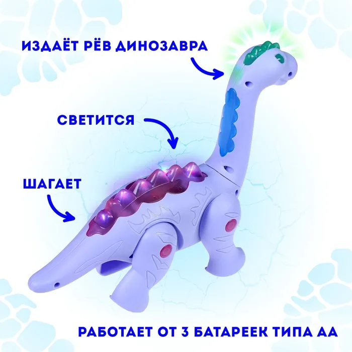 Динозавр «Диплодок травоядный», световые и звуковые эффекты, работает от батареек, МИКС — Характеристики