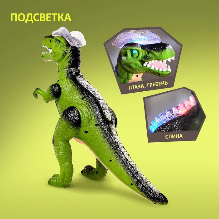 Динозавр радиоуправляемый T-Rex, световые и звуковые эффекты, работает от батареек, цвет зелёный — Характеристики