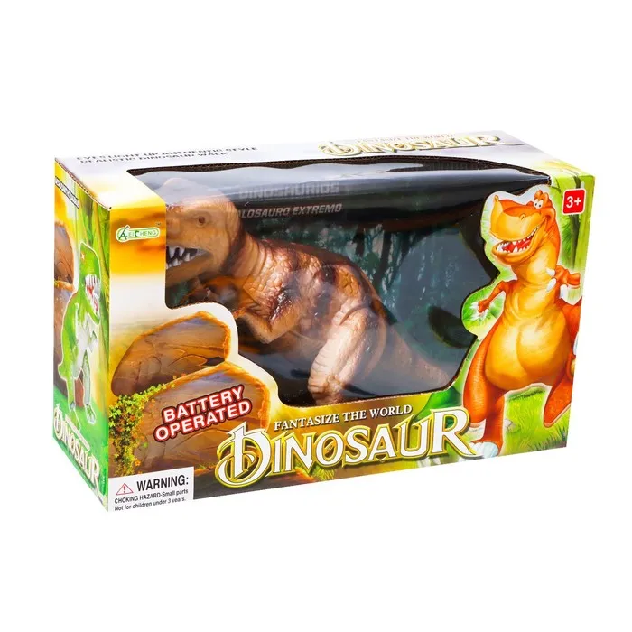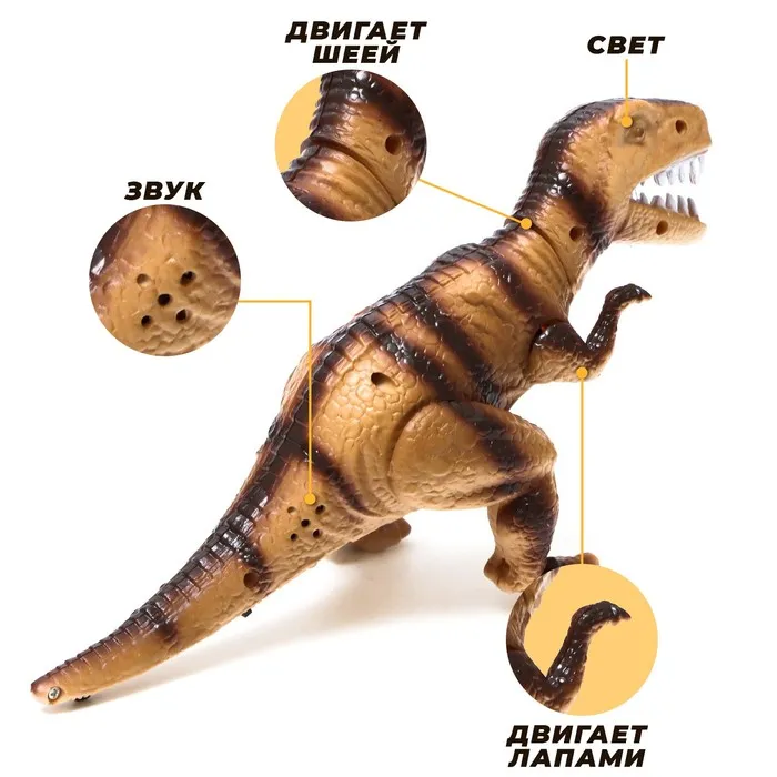 Игрушечный динозавр, несомненно, понравится ребёнку. Уменьшенная копия большой рептилии умеет ходить, крутить головой и издавать звуки, а ещё у игрушки светятся глаза, от чего играть с ней становиться увлекательнее.