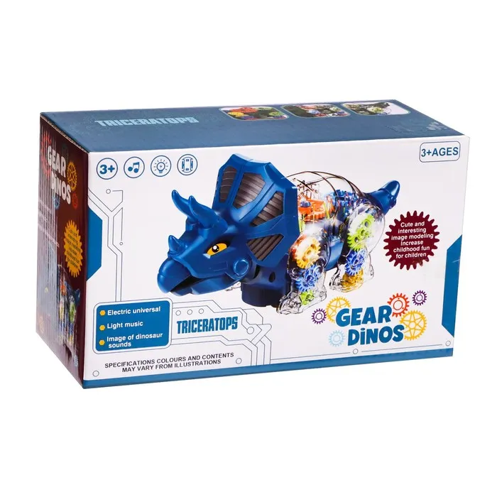 Динозавр «Шестерёнки», свет и звук, работает от батареек, цвет зелёный — Характеристики