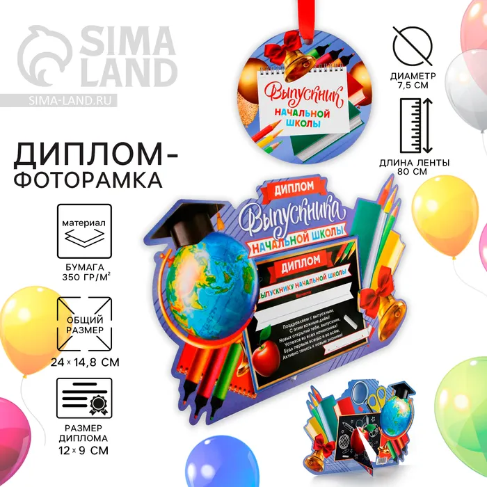 Диплом-фоторамка на выпускной «Выпускник начальной школы», 350 г/м² — Характеристики