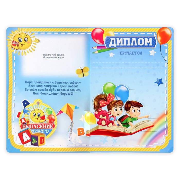 Такой диплом в комплекте с медалью не оставит ни одного ребенка равнодушным, поможет сделать выпускной особенно торжественным и останется на долгую память!