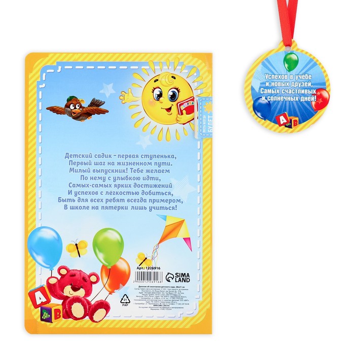 Диплом и медаль на выпускной «Выпускника детского сада», 13.7×20.8 см, 250 г/м² — Характеристики