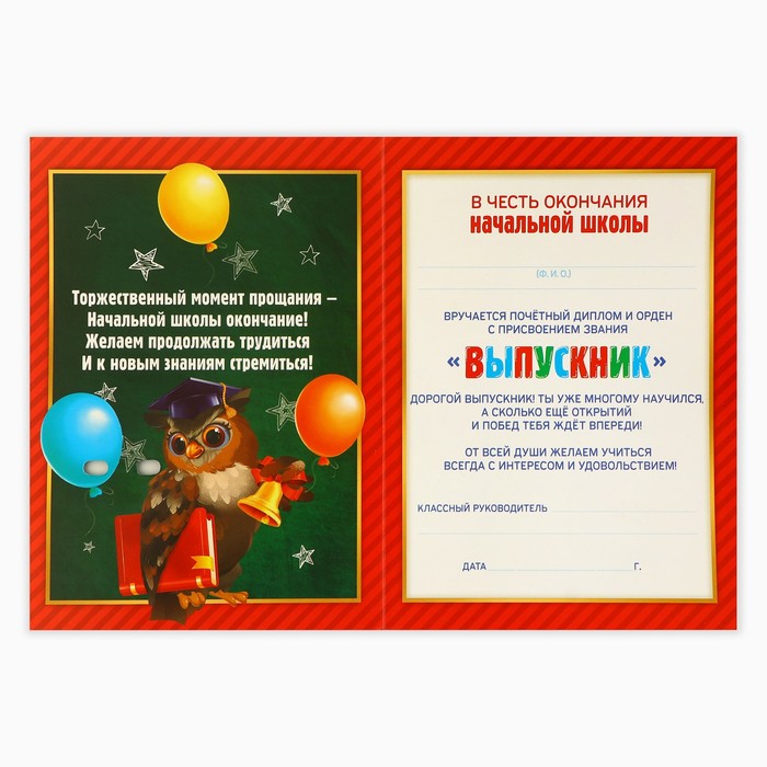 Диплом и орден на Выпускной «Выпускнику начальных классов 2024», подарочный набор — Характеристики