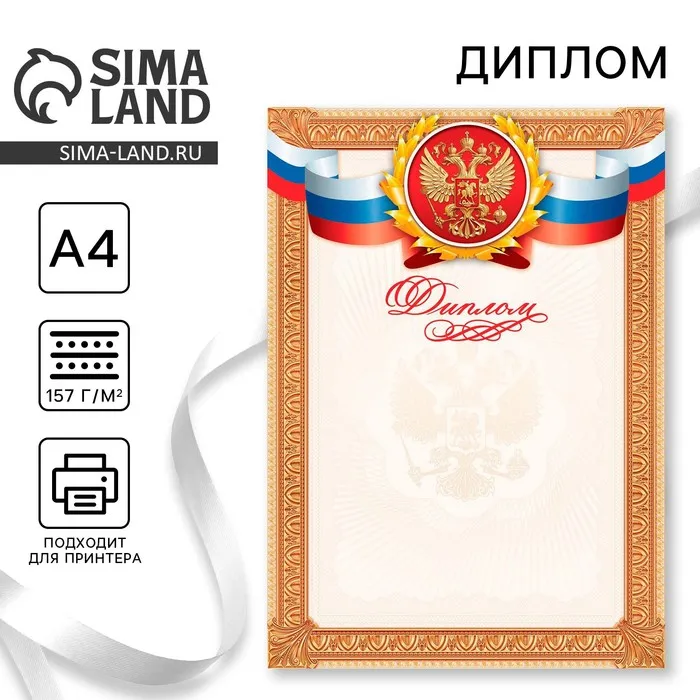 Диплом классический "Российская символика", золотая рамка, 21х29,7 см — Характеристики
