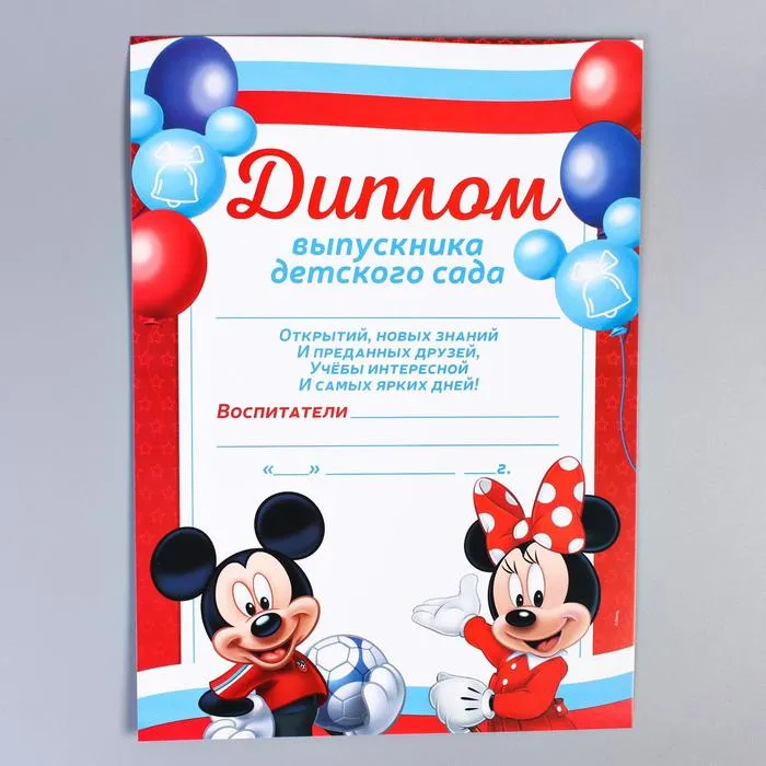 Диплом на выпускной «Выпускник детского сада» А4, Микки Маус — Характеристики