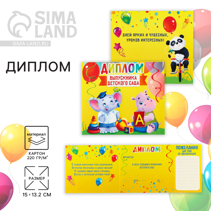 Диплом на Выпускной «Выпускника детского сада», 220 г/м² — Характеристики