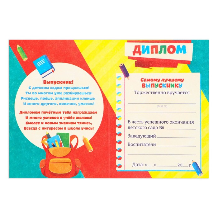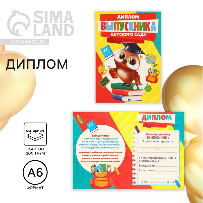 Диплом на Выпускной «Выпускника детского сада», А6, 200 гр/кв.м — Характеристики