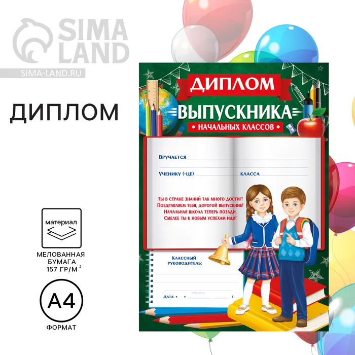 Диплом на Выпускной «Выпускника начальной школы», А4, 157 гр/кв.м — Характеристики