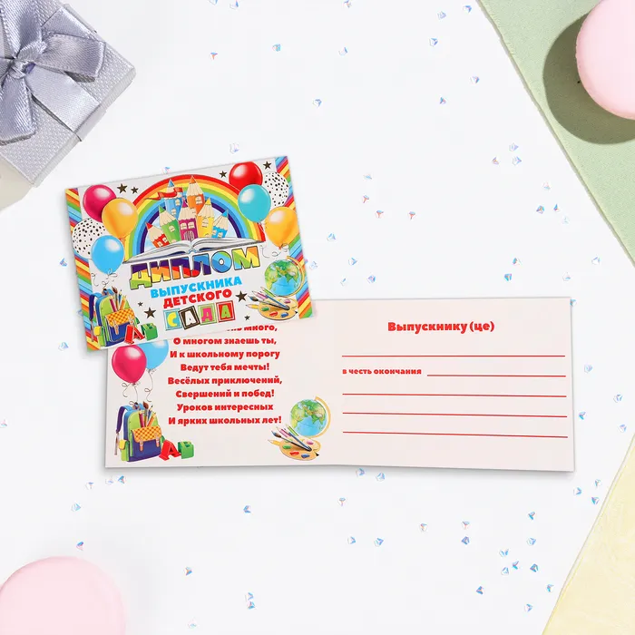 Диплом на выпускной «Выпускнику Детского Сада!» тиснение, 22×16.5 см — Характеристики