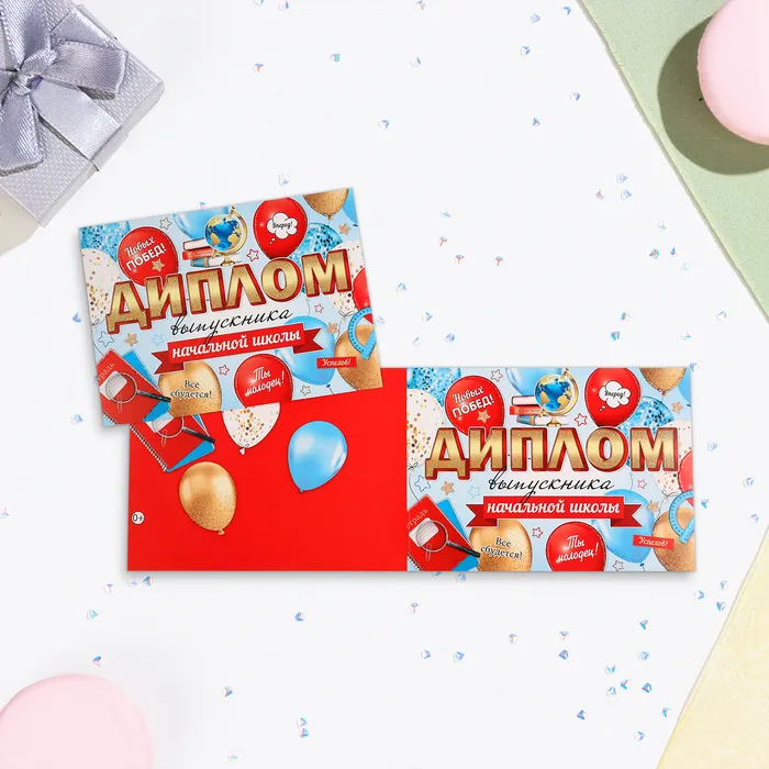 Диплом на выпускной «Выпускнику начальной школы!» глиттер, 22×16.5 см — Характеристики
