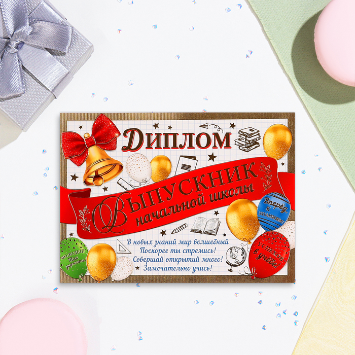 Диплом на выпускной «Выпускнику начальной школы!» тиснение, 22×16.5 см — Характеристики