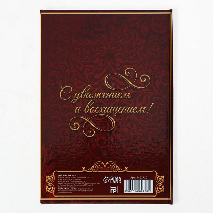 Изделие — отличный вариант для оригинального поздравления. Красочные изображения, тёплые слова, поле для имени получателя и список причин для вручения делают его незаменимым аксессуаром праздника! Изделие формата А6 изготовлено из плотного картона.