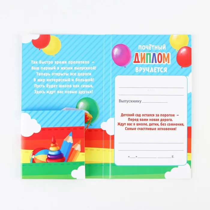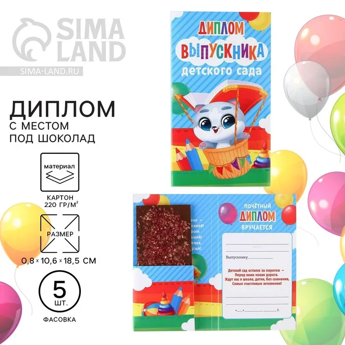 Диплом с местом под шоколад на Выпускной «Выпускник детского сада», 220 гр/ кв. м — Характеристики