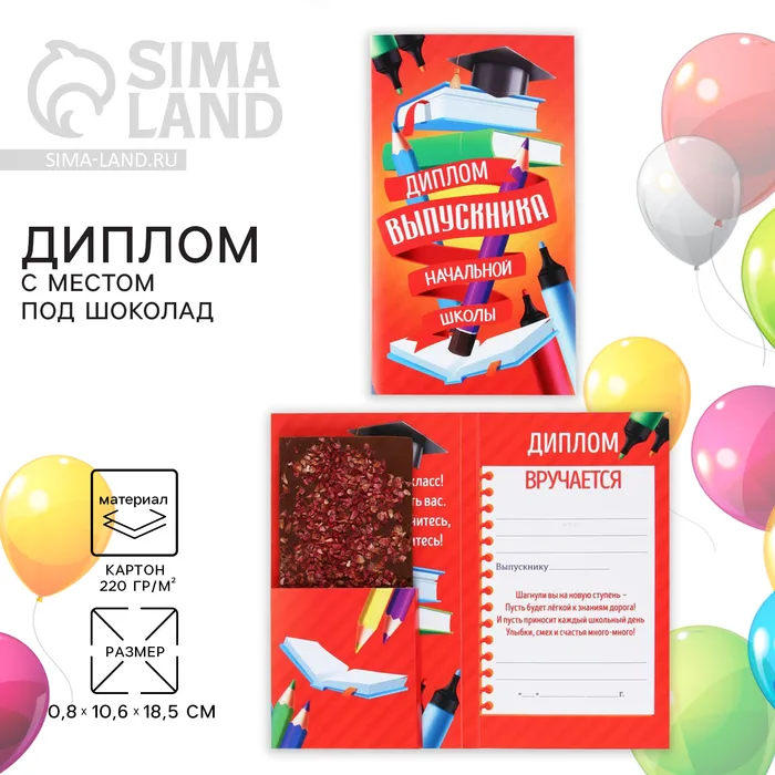 Диплом с местом под шоколад на Выпускной «Выпускник начальной школы», 220 гр/ кв. м — Характеристики