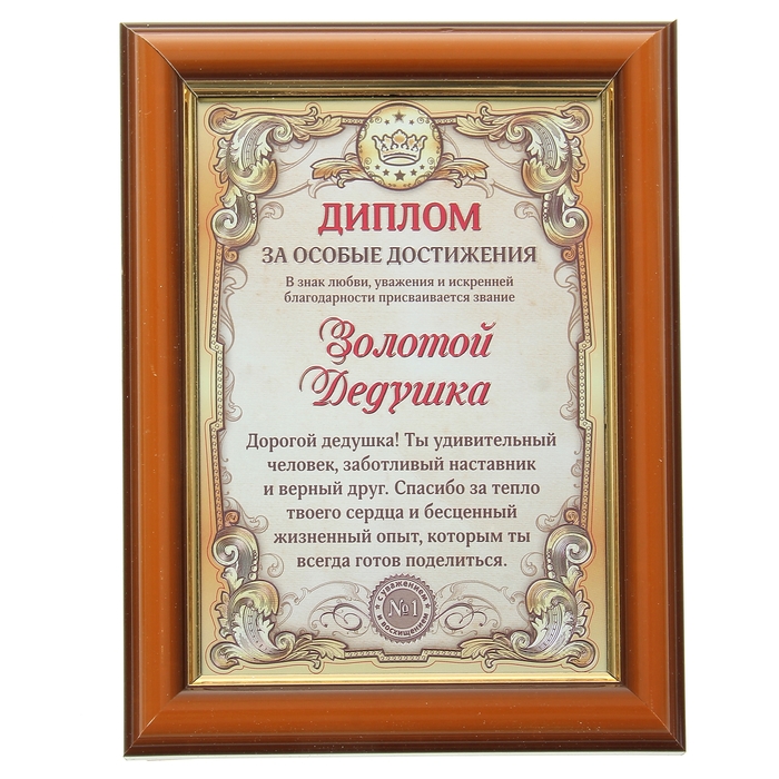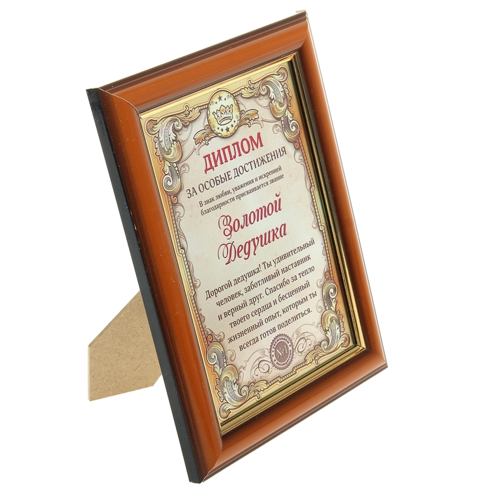 Диплом в рамке «Золотой дедушка», золото 16.6×21.6 см — Характеристики