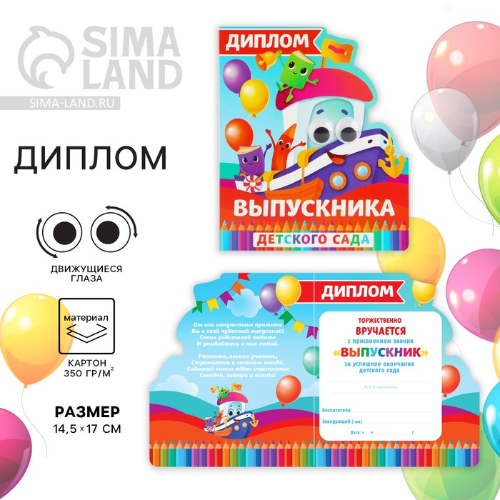 Диплом «Выпускник Детского Сада!» глиттер, 44.5×16.5 см — Характеристики