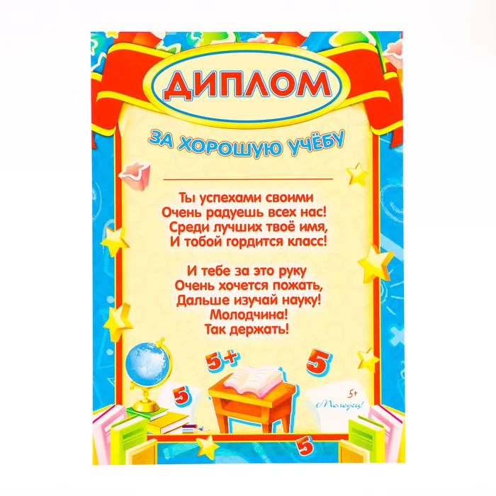 Диплом «За хорошую учёбу!», картон, А4 — Характеристики