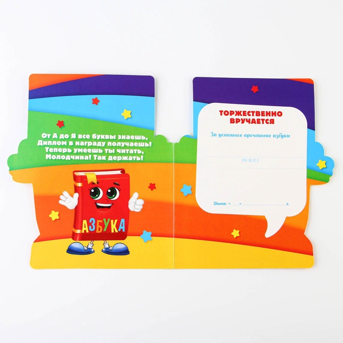 Диплом "Знатоку азбуки» - яркая и красочная награда станет для ребенка подтверждением его знаний и дополнительным стимулом к новым успехам и достижениям.